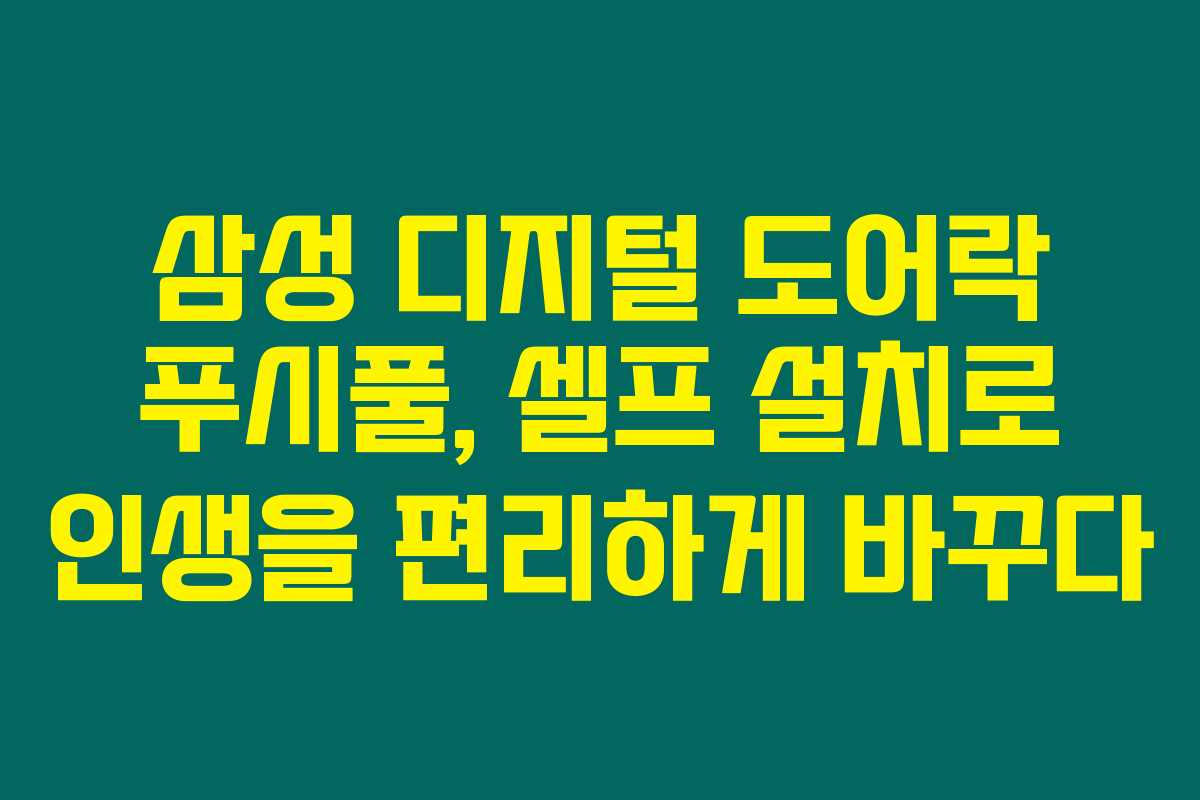 1. 삼성 디지털 도어락 푸시풀 설치는 정말 쉬운가요?