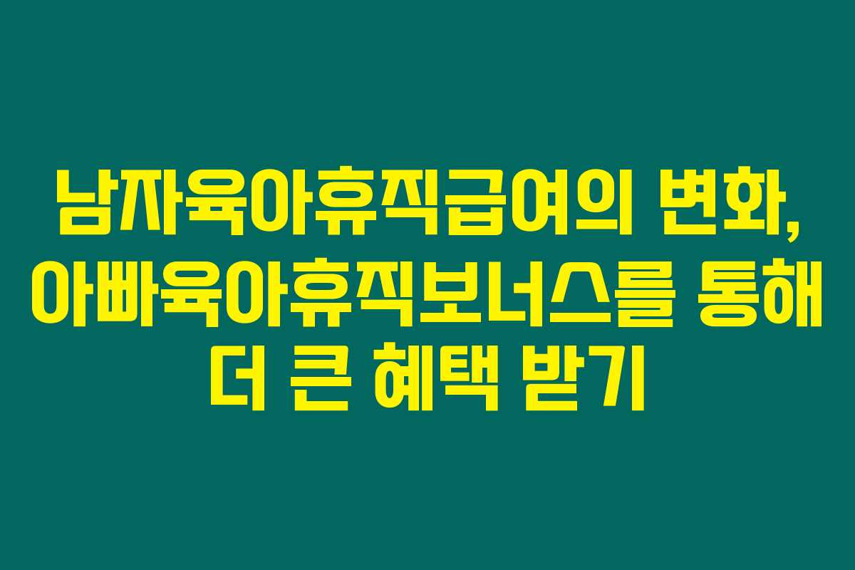 제가 직접 확인해본 결과로는, 남자 육아휴직은 최근 여러 가지 변화가 있어 이전보다 더 유리한 조건으로 개선되고 있어요. 오늘은 남자육아휴직급여의 변화와 함께 아빠육아휴직보너스에 대해 자세히 알아보도록 할게요. 아래를 읽어보시면, 최신 정보와 함께 육아휴직을 알차게 이용하는 방법에 대해 많은 도움이 될 거예요.