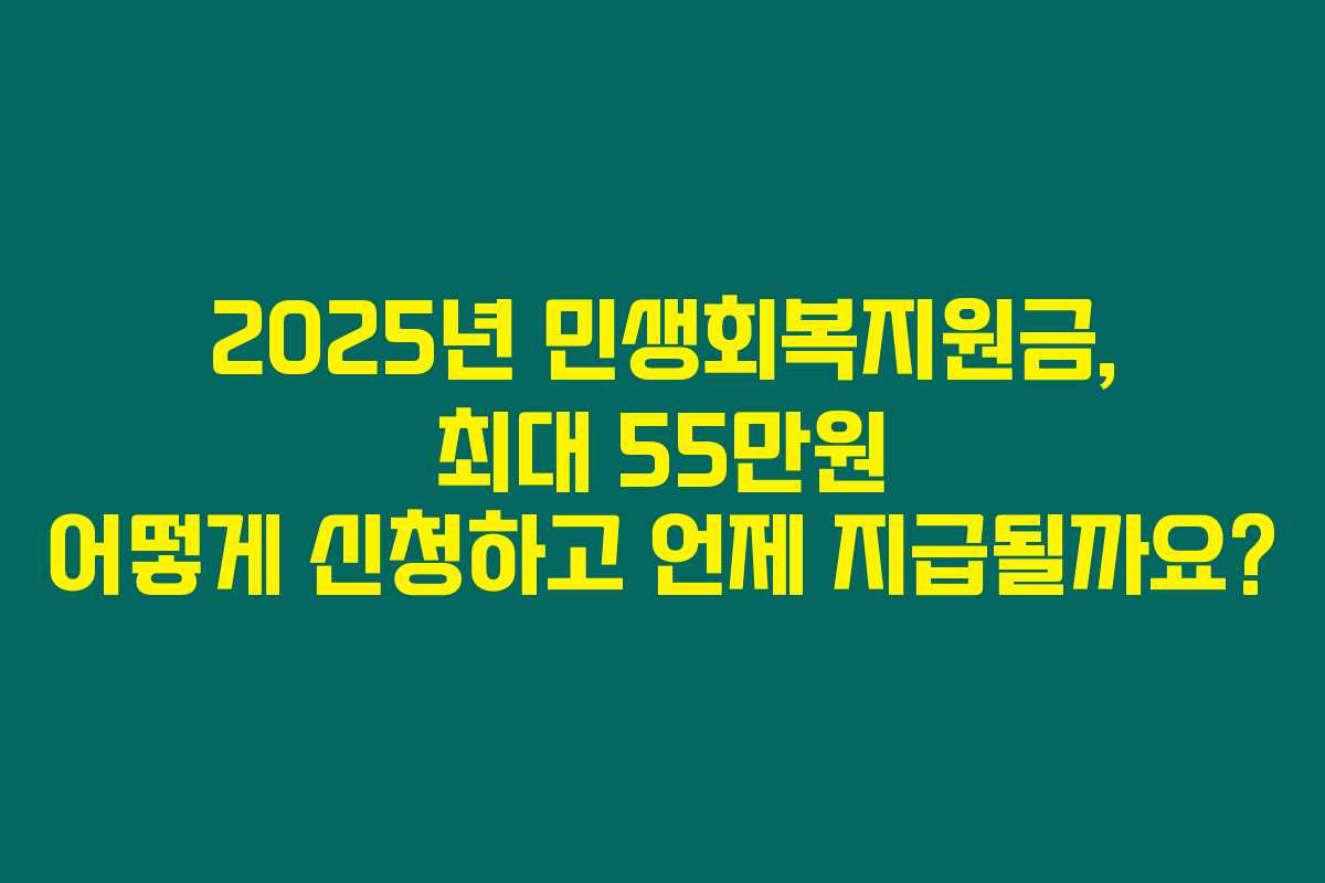 제가 알아본 바로는 2025년에는 고물가 시대를 대비하여 정부가 민생 회복을 위해 최대 55만원의 지원금을 지급할 예정입니다. 이 지원금은 모든 국민을 대상으로 하며, 주로 소득 수준에 따라 차등 지급됩니다. 아래를 읽어보시면 2025년 민생회복지원금의 신청 방법과 지급 시기에 대한 자세한 정보를 확인할 수 있습니다.