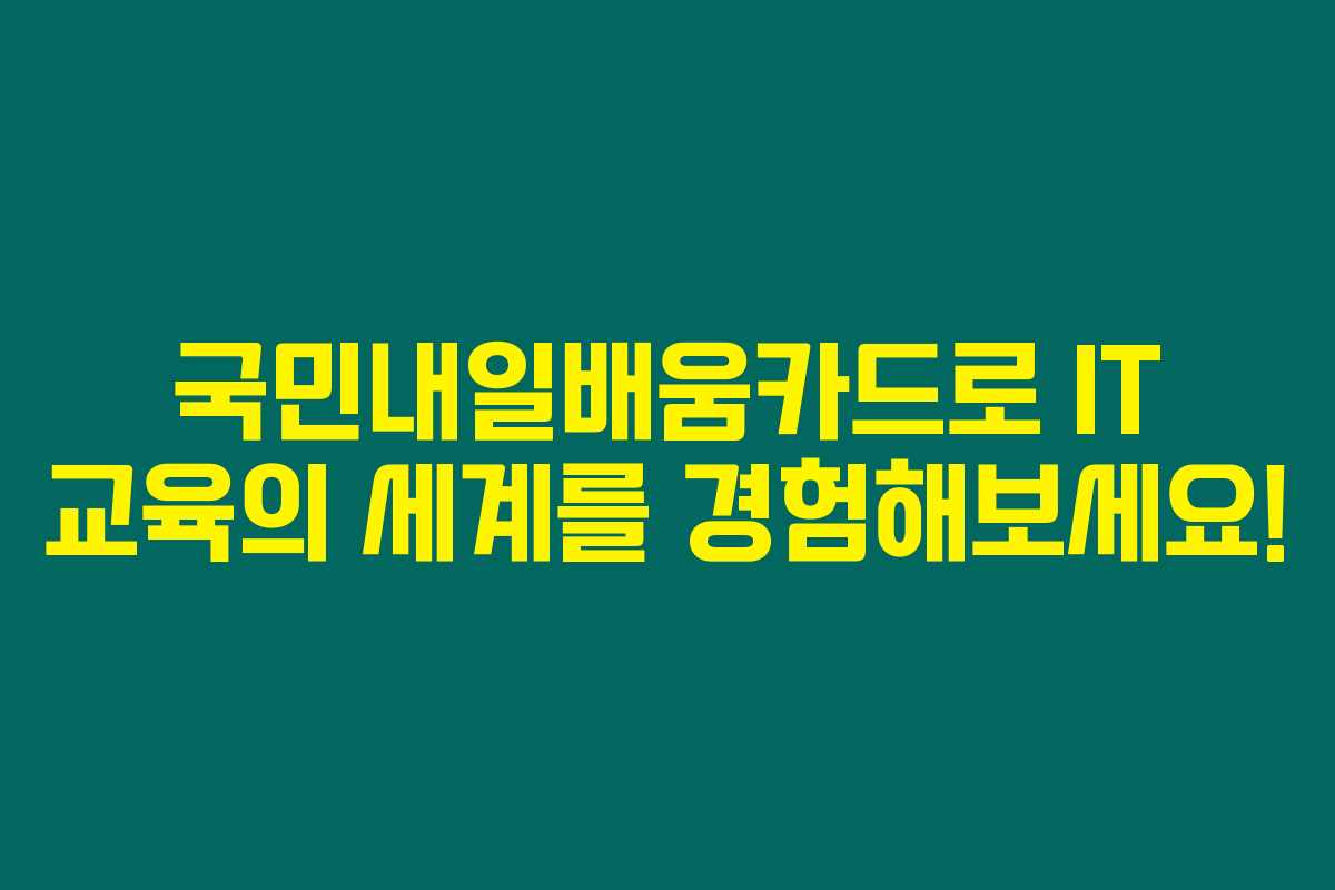 IT 교육을 통해 새로운 도전에 나서는 것은 매우 멋진 발걸음이랍니다. 국민내일배움카드를 활용하면 그 꿈이 앞당겨질 거예요! 여러분의 성공적인 여정을 응원합니다!