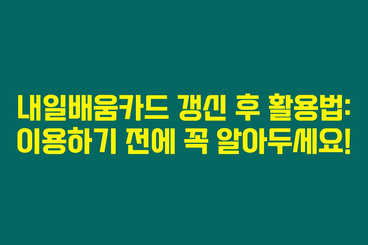 제가 직접 알아본 결과로는 내일배움카드는 직업 능력을 개발하고 향상시킬 수 있는 훌륭한 제도입니다. 하지만 갱신이나 활용 방법에 대한 정보가 부족할 수 있기에, 아래를 읽어보시면 갱신 후 내일배움카드 사용 방법에 대한 유용한 팁과 개인적인 경험을 함께 나누겠습니다.