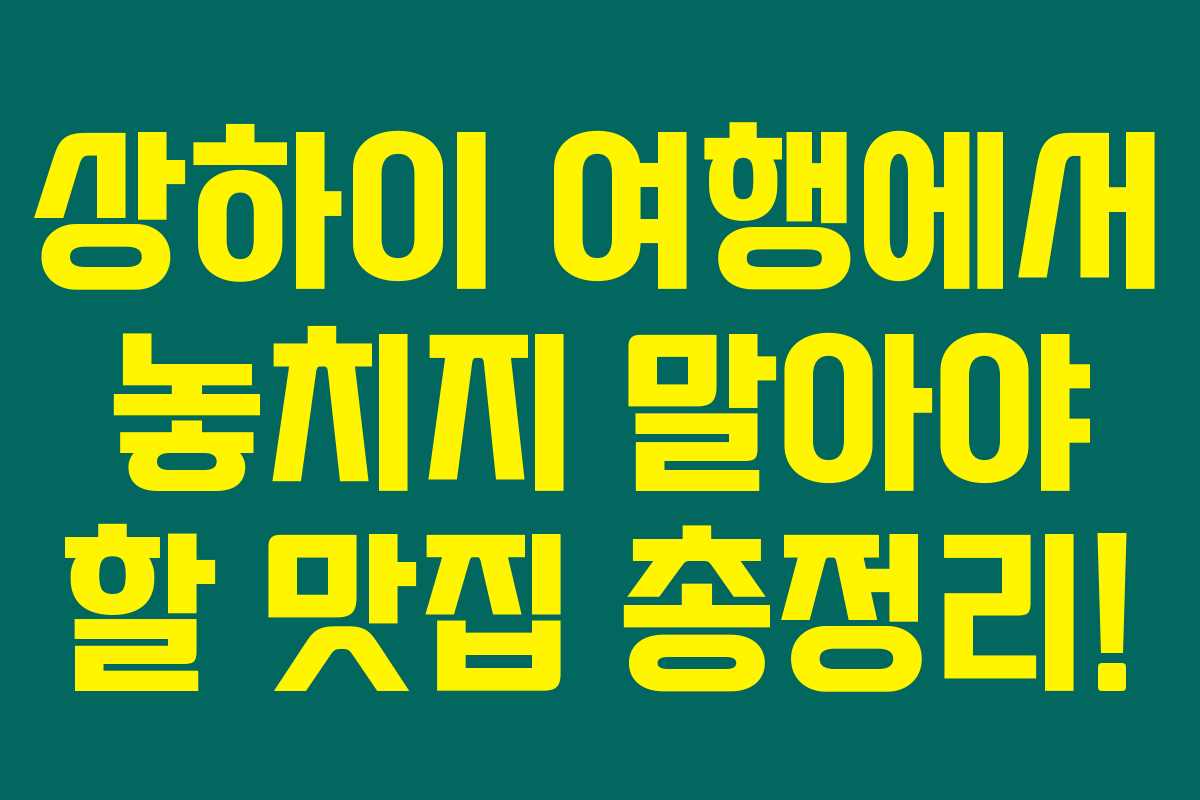 상하이에는 한국인에게 사랑받는 여러 맛집들이 있답니다. 제가 직접 체크해본 바로는, 현지인들 사이에서도 유명한 곳들을 포함하여 정리해봤어요. 여기서 여러분의 입맛에 맞는 맛집을 찾을 수 있을 거예요!