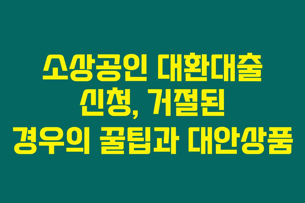 소상공인 대환대출이 거절되었다면, 다른 대안상품을 고려해야 합니다. 제가 직접 체크해본 바로는 대안상품을 활용하면 추가 대출을 받거나 이자 부담을 줄일 수 있는 다양한 기회가 있더라고요. 예를 들어, 통합 대출의 경우 여러 개의 대출을 하나로 묶어 금리 혜택을 받을 수 있는 방법도 있습니다.