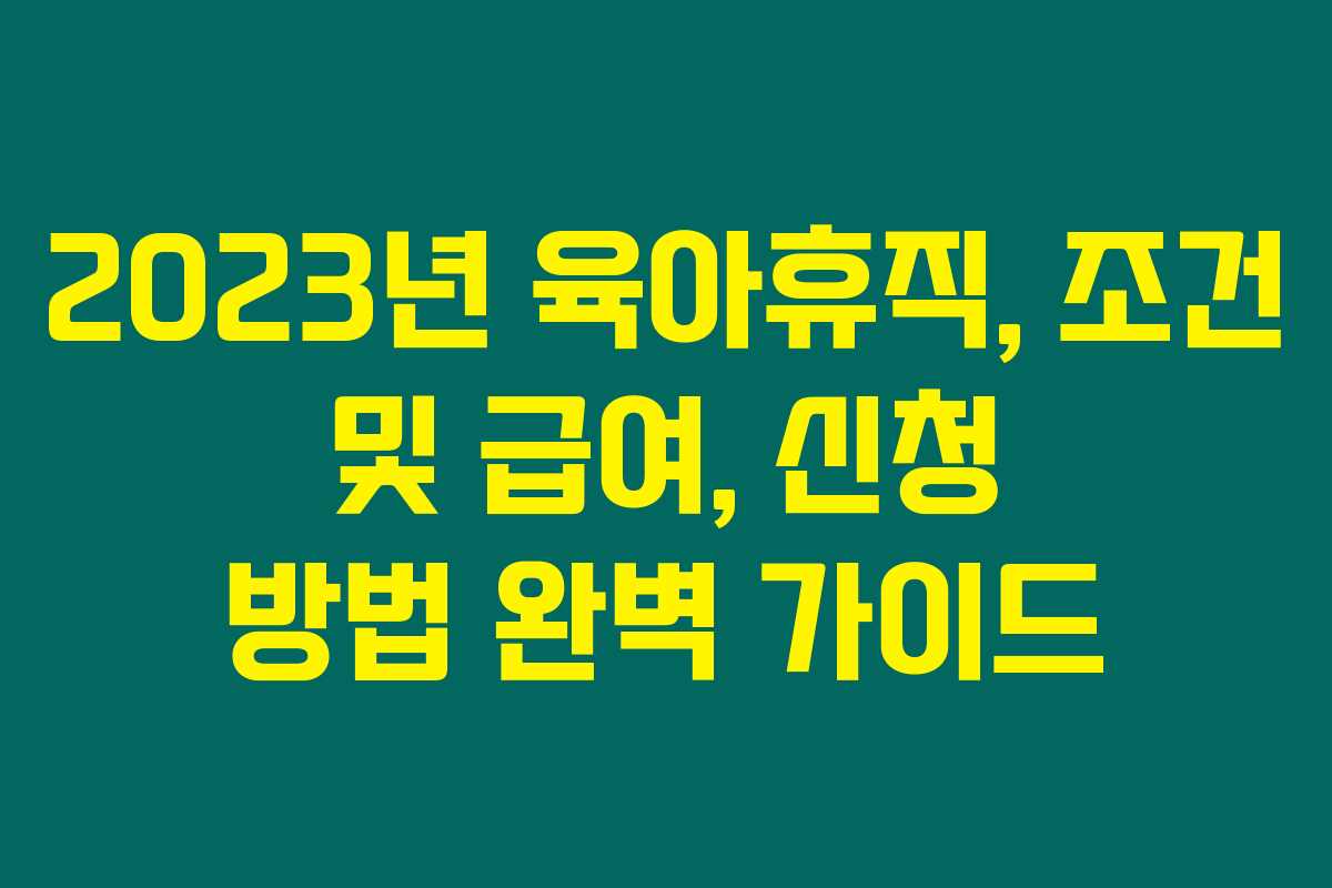 제가 판단하기로는, 2023년 육아휴직에 대한 조건, 급여, 신청 방법에 대해 자세히 알아보았어요. 이 내용을 통해 여러분들이 필요한 정보와 제도를 더 쉽게 이해할 수 있게 도움을 드리고자 해요.