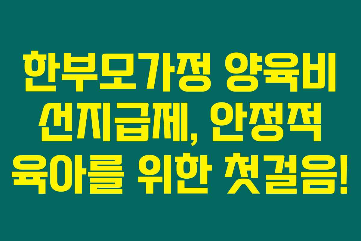 - 사전 준비: 한부모가정이 양육비 선지급제를 통해 안정적인 환경에서 자녀를 키울 수 있도록 최선을 다하고 있습니다.