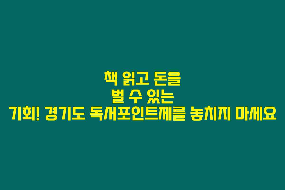 경기도 독서포인트제를 통해 책을 읽고 돈을 벌 수 있는 놀라운 기회를 꼭 놓치지 마세요!