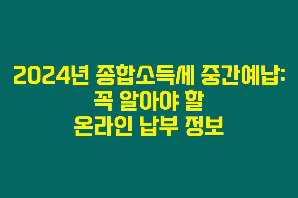 2024년 종합소득세 중간예납 관련 세액조회 및 납부 기한에 대해 제가 직접 경험해본 바로는, 온라인으로 납부하는 과정이 굉장히 간편하답니다. 이번 글을 통해 중간예납에 대한 핵심 정보를 상세히 소개해드릴게요.