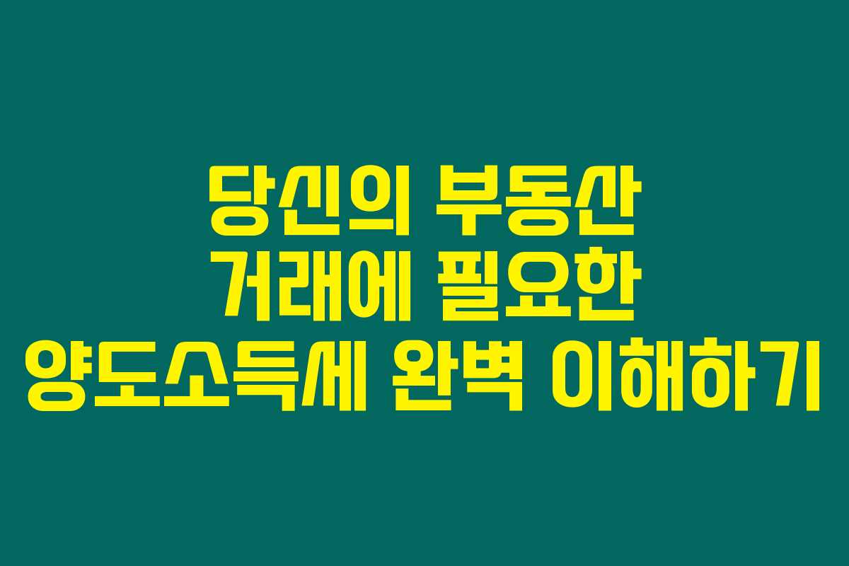 부동산 거래 시 발생하는 양도소득세는 매우 중요한 세금입니다. 부동산에 대한 시장의 변동성과 개인의 상황에 따라 많은 변수를 갖고 있으므로, 사전 조사를 통해 준비하는 것이 좋습니다. 필요한 경우 전문가에게 도움을 받는 것도 좋은 방법인 것 같아요.