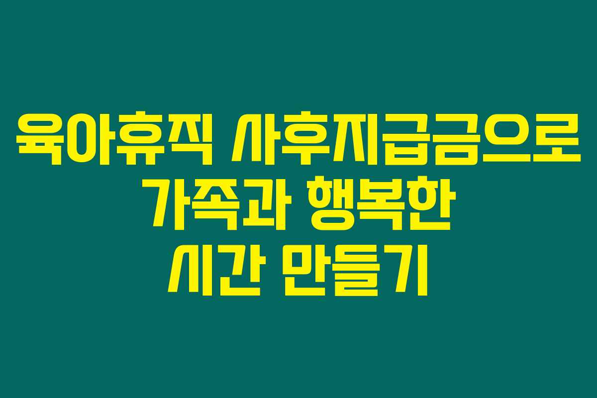 - 육아휴직 사후지급금의 활용 및 효율적인 사용법