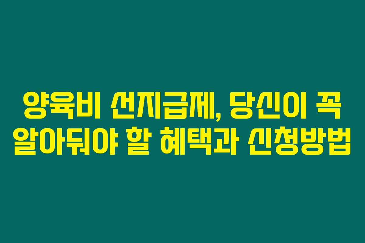 양육비 선지급제는 많은 한부모 가정이 힘든 상황에서 경제적 지원을 제공하기 위해 시행된 제도입니다. 조건에 해당하신 분들은 꼭 신청하셔서 안정적인 가정을 꾸려가시기 바랍니다. 혹시 도움이 필요하시면 언제든 문의해 주세요!