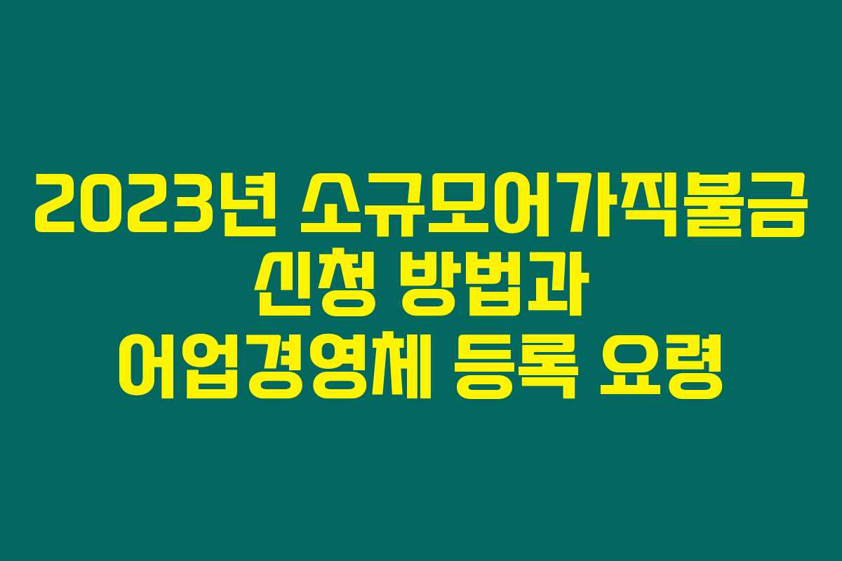 소규모어가직불금의 지급대상으로는 어업경영체에 등록된 어업인이 포함됩니다. 여기서 어업경영체란 연간 수산물 판매액이 120만 원 이상이거나, 1년 중 60일 이상 어업에 종사한 증빙이 있는 경우를 말합니다. 이러한 요건을 충족하는 것이 매우 중요한데요, 만약 해당된다면 도움이 될 수 있습니다.