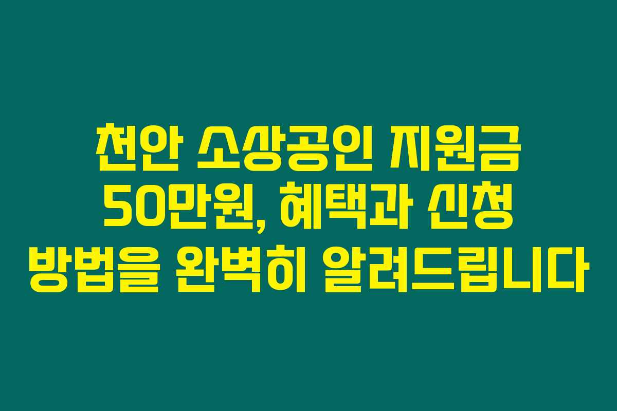 천안 소상공인 지원금 50만원, 혜택과 신청 방법을 완벽히 알려드립니다
