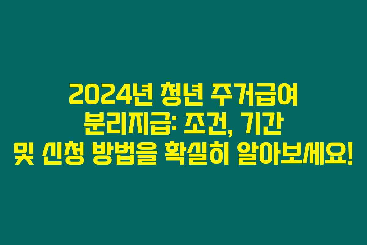 청년 주거급여 분리지급을 받기 위해서는 다음 세 가지 조건이 충족되어야 합니다.