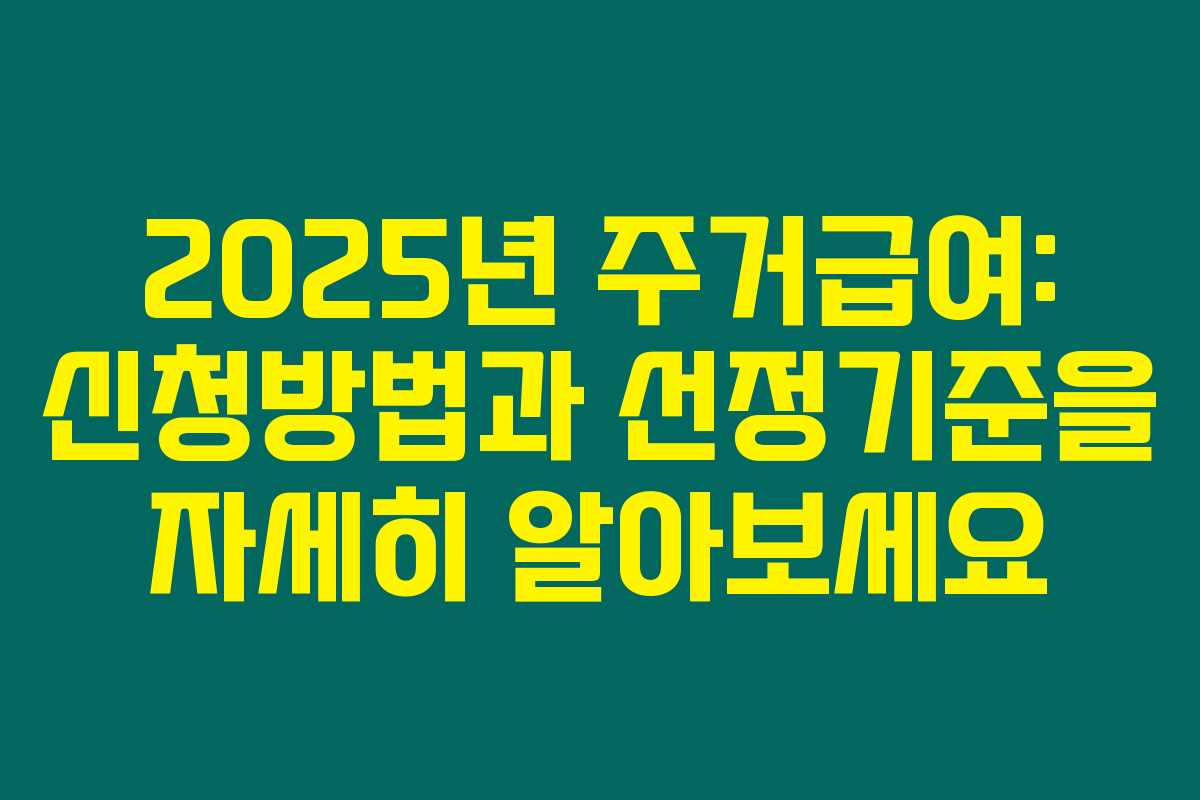 건강한 주거생활은 모든 가구의 기본적인 요구사항이지요. 제가 직접 체크해본 바로는, 2025년 주거급여는 저소득 가구의 주거 안정을 돕기 위한 중요한 정책으로, 신청 방법과 선정 기준이 명확히 마련되어 있습니다. 이러한 정보를 이해하고 준비하면 많은 가구가 혜택을 누릴 수 있으니 아래를 읽어보시면 도움이 될 것이라 생각해요.