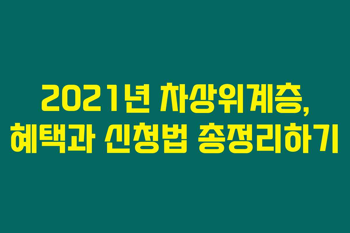 제가 직접 리서치해본 바로는, 2021년 차상위계층은 경제적으로 어려운 상황에서 적절한 지원을 받을 수 있는 중요한 기준입니다. 차상위계층은 주로 기초생활수급자로서의 혜택을 받을 수 없는 잠재적 빈곤층을 의미하며, 이들에게 다양한 지원이 마련되어 있습니다. 아래를 읽어보시면 차상위계층의 신청방법과 혜택, 재산기준 등에 대한 다양한 정보를 얻을 수 있을 거에요.