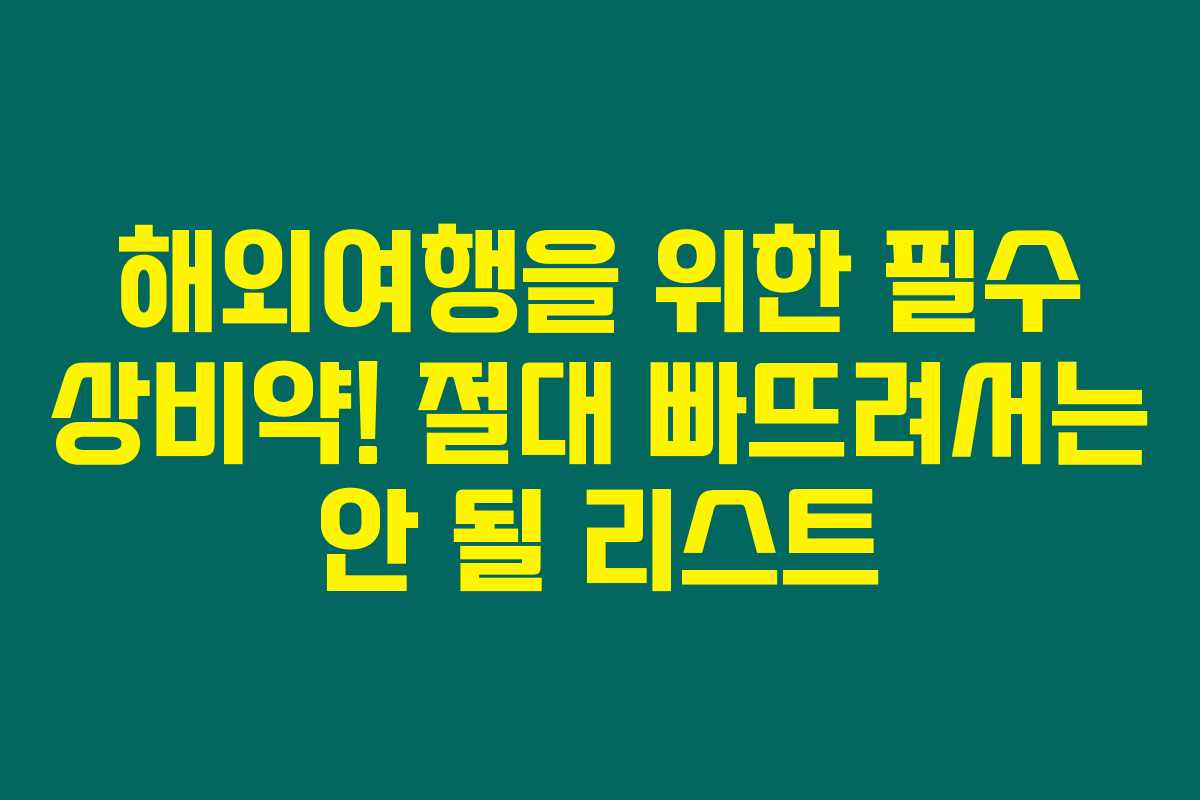 해외여행을 준비할 때 설렌 마음과 함께 건강 문제에 대한 걱정도 함께 하게 됩니다. 제가 직접 체크해본 바로는 해외에서는 약국을 찾기 힘들거나, 성분이 다른 약을 구매해야 할 경우가 많아 건강 문제가 발생하면 큰 곤란에 처할 수 있어요. 그러므로 해외여행을 떠나기 전, 필요한 상비약을 미리 준비하는 것이 정말 중요하답니다. 아래를 읽어보시면 해외여행 필수 상비약 리스트와 보관 방법, 그리고 국가별 의약품 반입 규정까지 자세히 알려드릴게요!