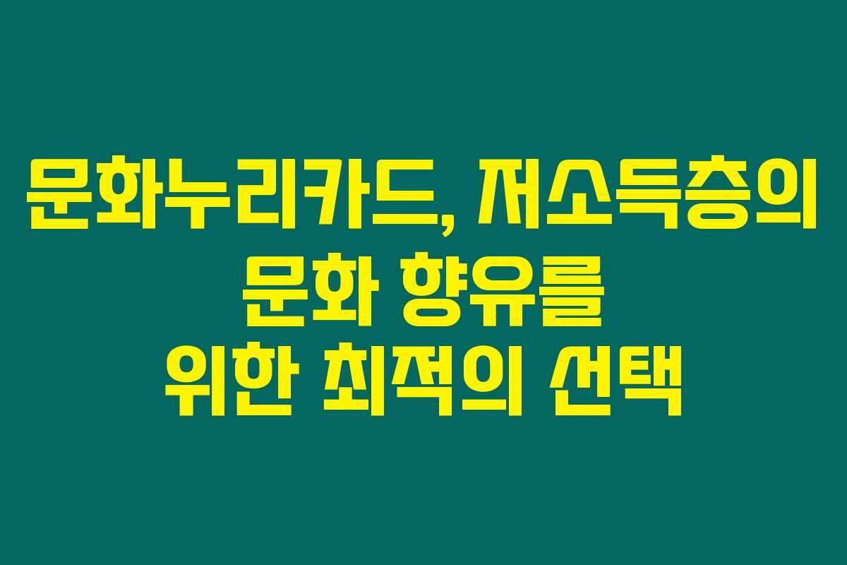 문화누리카드는 단순한 경제적 지원을 넘어, 다양한 문화 활동을 통한 사회적 소외 극복과 문화 향유권을 보장하는 중요한 제도입니다. 제가 직접 경험해본 결과로는, 이러한 카드에 대한 정확한 이해와 활용이 더욱 많은 사람들에게 도움이 될 수 있습니다. 저소득층의 문화 접근성을 높이기 위한 이 제도를 잊지 말고 이용해보세요!