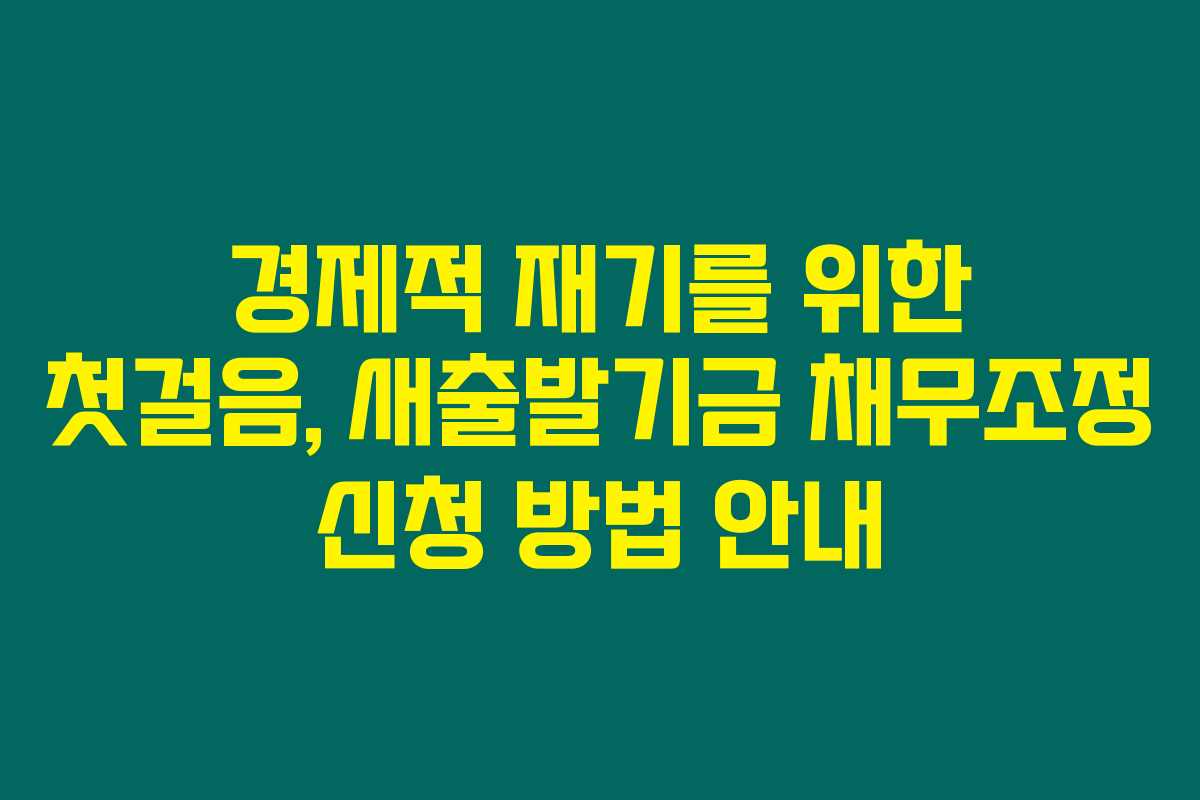 제가 직접 알아본 바로는, 경제적 어려움을 겪고 있는 분들께 가장 필요한 것은 실질적인 지원과 정보입니다. 새출발기금은 그런 분들을 위해 마련된 정부의 정책으로, 과도한 채무로 인한 부담을 덜어주고 새로운 시작을 할 수 있는 기회를 제공합니다. 아래를 읽어보시면 새출발기금 채무조정에 대한 모든 정보와 신청 방법, 요건 등을 자세히 알 수 있습니다.