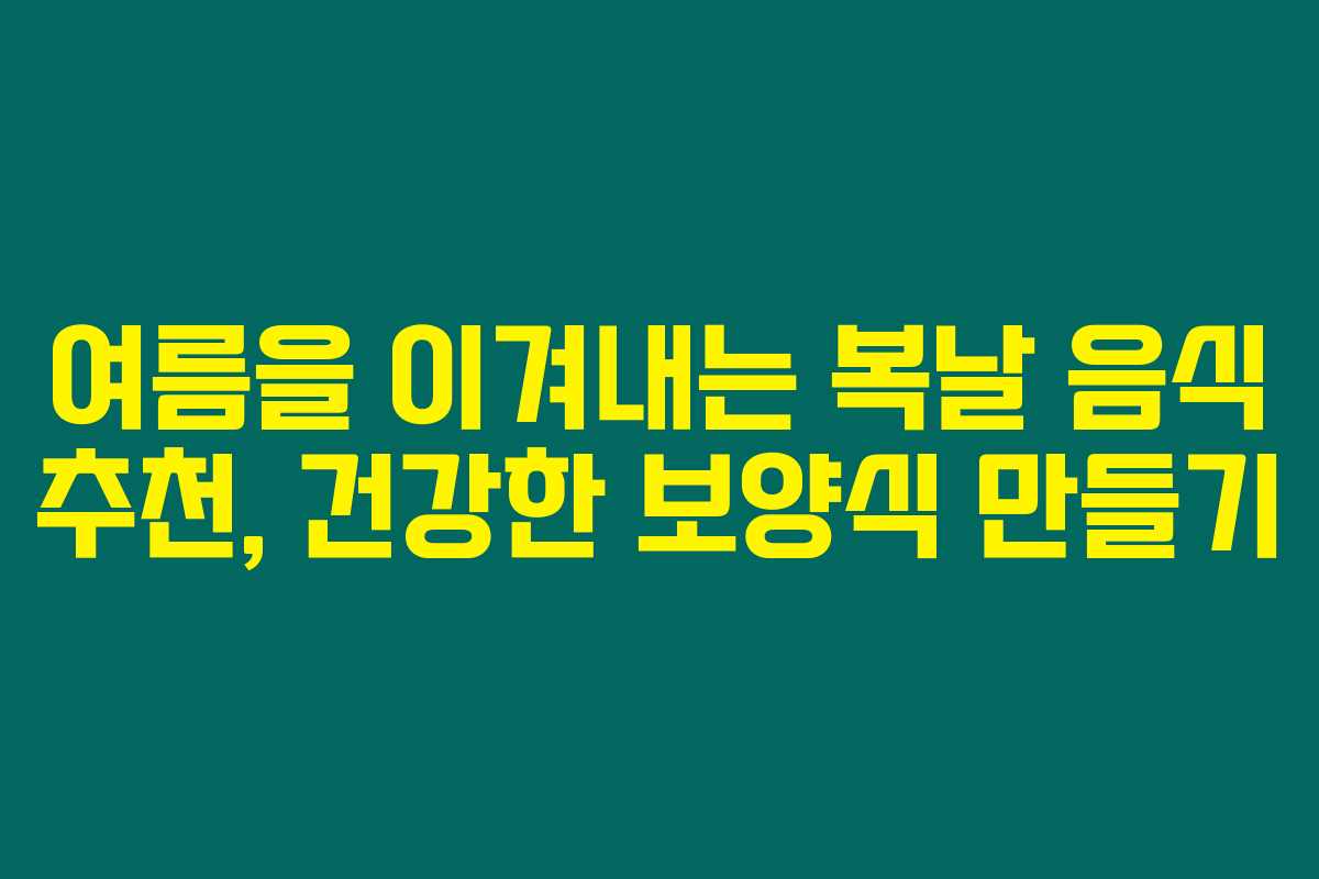 여름을 이겨내는 복날 음식 추천, 건강한 보양식 만들기
