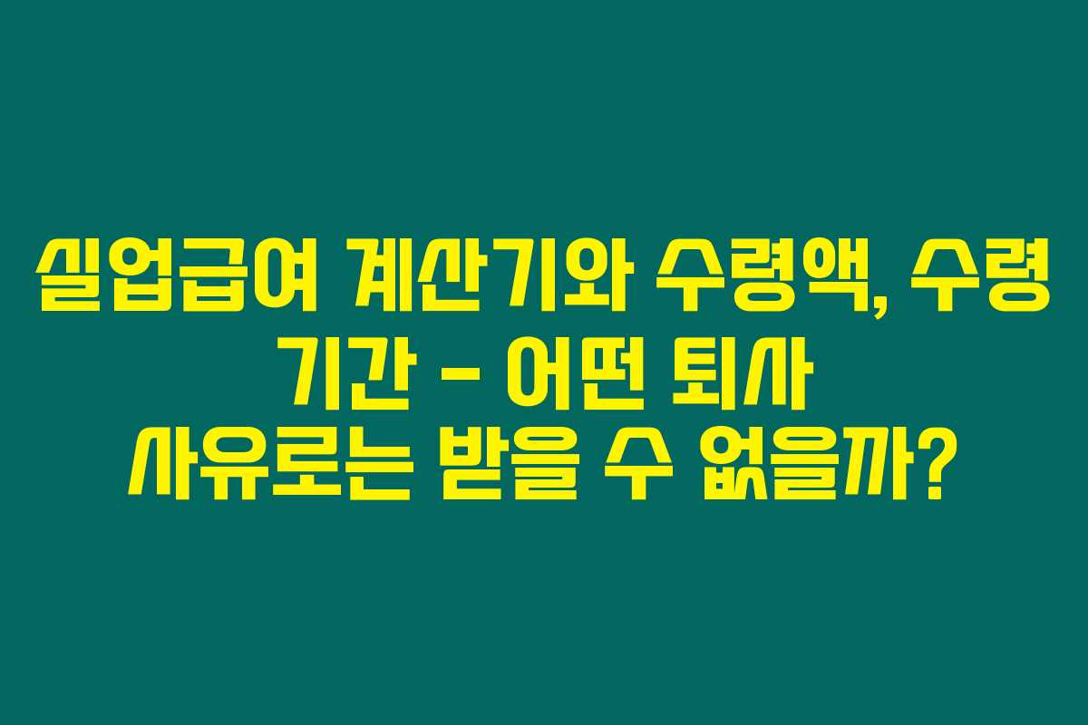 실업급여는 많은 이들이 경험하는 중요한 경제적 지원이죠. 퇴사에 따른 경제적 부담을 줄이기 위한 제도인데요, 하지만 모든 퇴사 상황에서 실업급여를 받을 수 있는 건 아닙니다. 아래를 읽어보시면 실업급여 계산 방법과 함께 수령액, 수령 기간, 그리고 실업급여를 못 받는 퇴사 사유에 대해 상세히 알아볼 수 있어요.