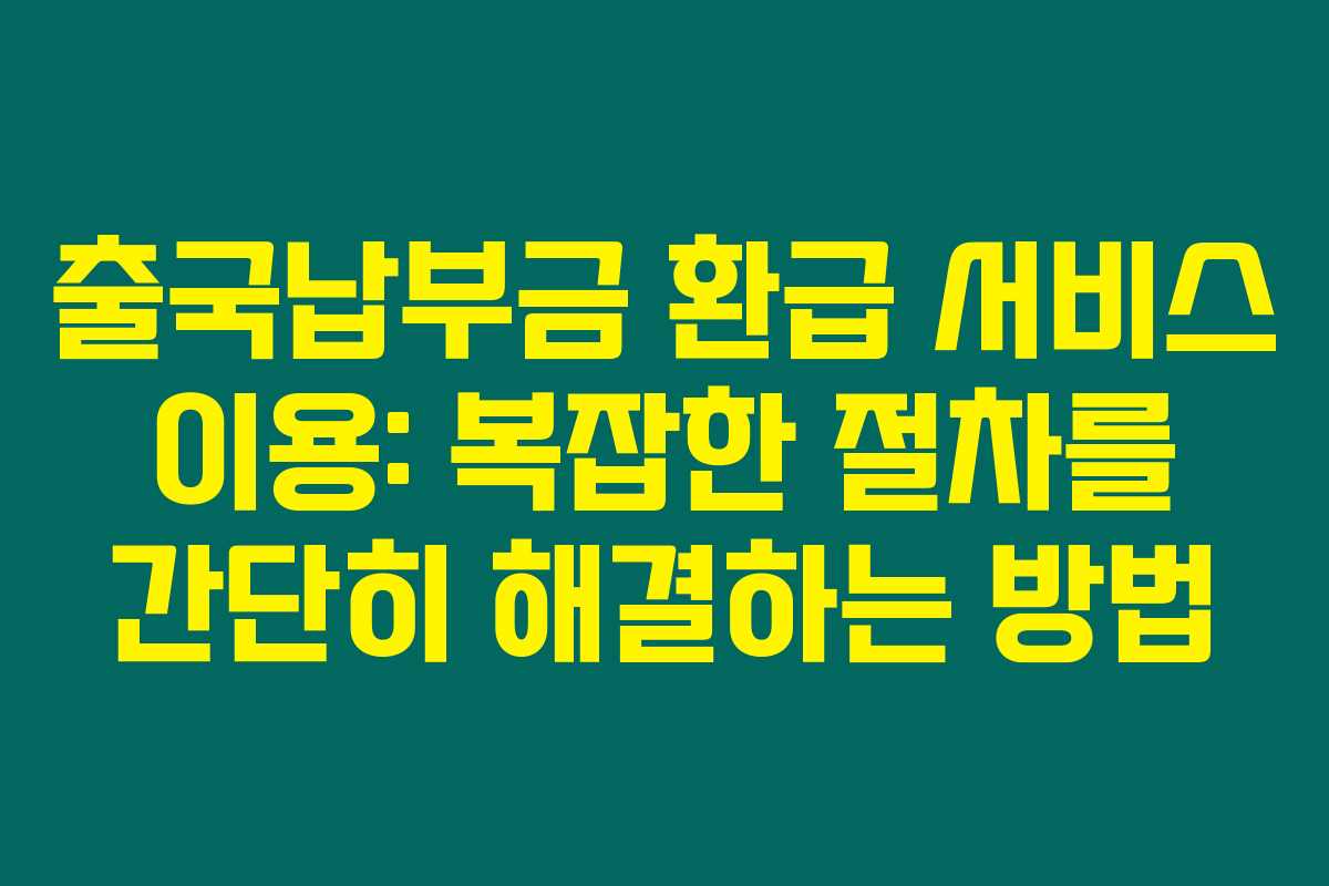 해외 출국 시 지불한 납부금을 환급받는 것은 여러분의 권리랍니다! 출국납부금 환급 서비스를 통해 간편하게 환급받으시고, 소중한 시간과 비용을 절약하세요. 이 정보를 통해 원활한 환급을 경험하시길 바랍니다.