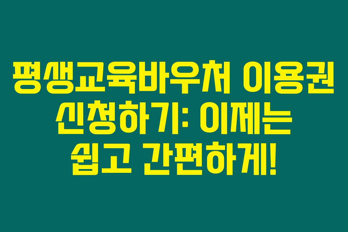 제가 직접 경험해본 결과로는, 평생교육바우처 이용권은 저소득층 성인들에게 교육비를 지원하기 위한 아주 유용한 제도랍니다. 이 글에서는 평생교육바우처의 신청방법과 조건, 그리고 혜택에 대해 자세히 설명해드리니, 아래를 읽어보시면 많은 도움이 되실 거예요.