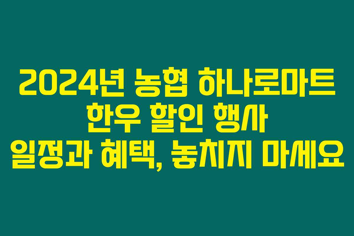 제가 직접 체크해본 바로는, 농협 하나로마트에서 진행하는 2024년 한우 할인 행사는 소비자들에게 굉장히 유익한 기회가 될 것 같아요. 특히, 고물가 시대에 한우를 더 저렴하게 즐길 수 있는 방법이니, 아래를 읽어보시면 다양한 할인 정보와 행사 일정을 확인할 수 있습니다.