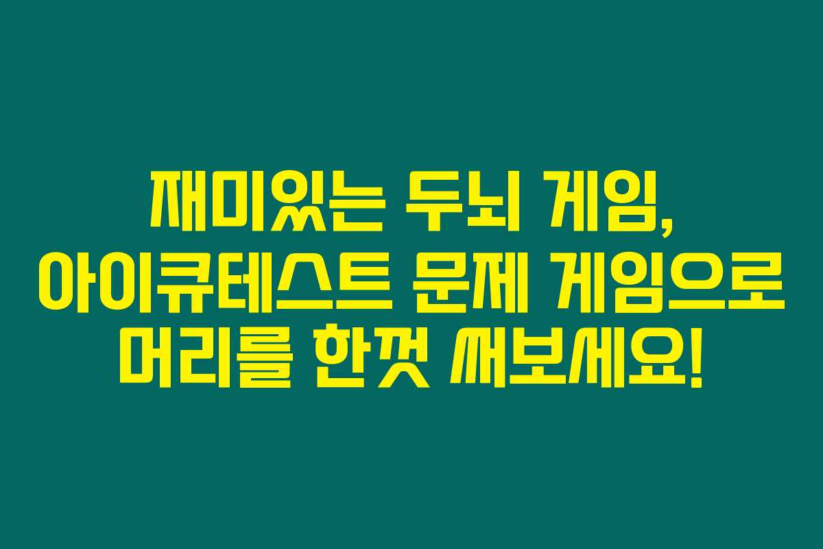최종적으로 아이큐테스트 문제 게임은 단순한 게임을 넘어 우리의 두뇌를 자극하는 훌륭한 도구예요. 문제를 해결하며 얻는 성취감은 언제나 뿌듯함을 주죠. 머리를 한껏 쓰고 싶다면, 지금 바로 플레이해보세요!