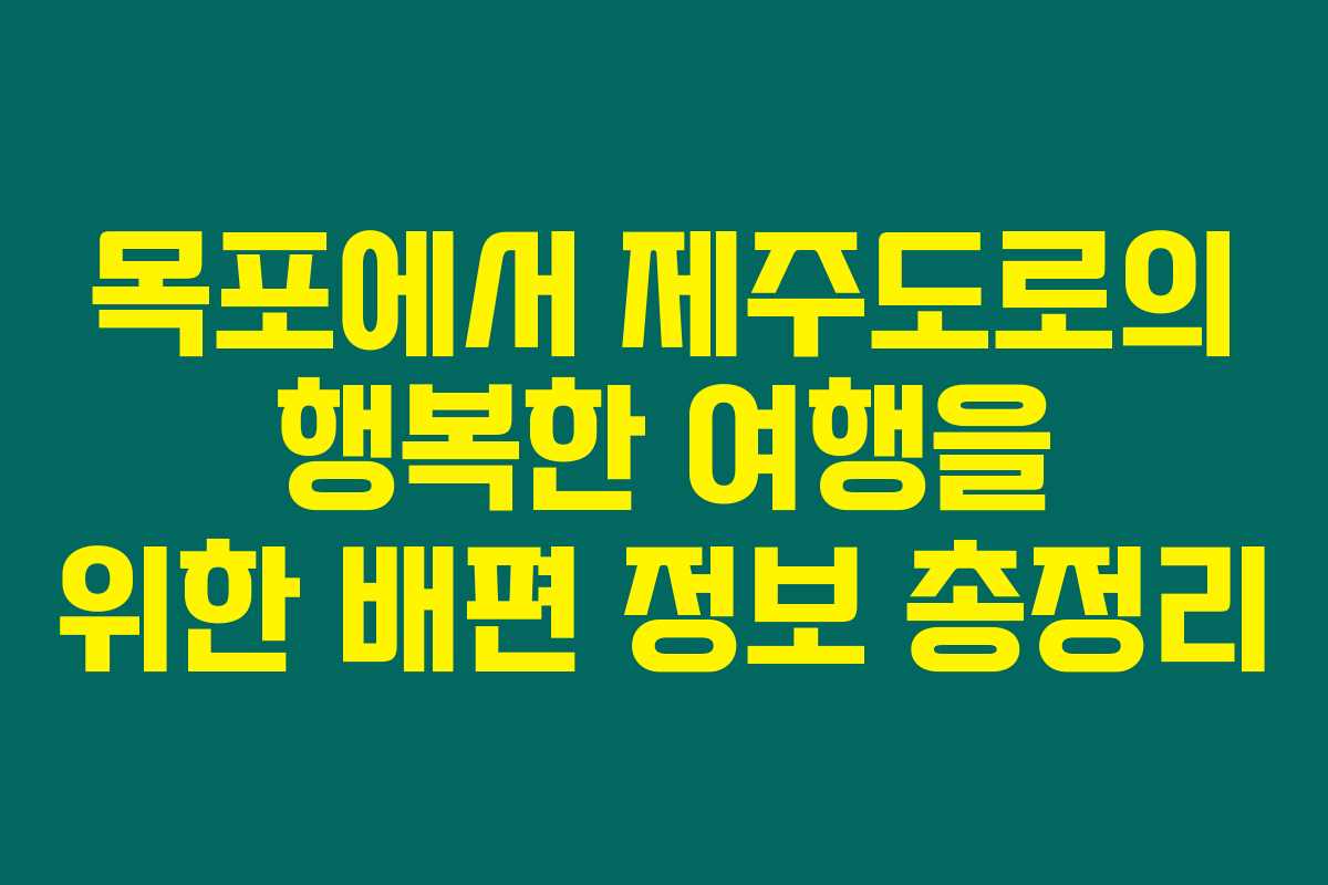 목포에서 제주도로의 행복한 여행을 위한 배편 정보 총정리