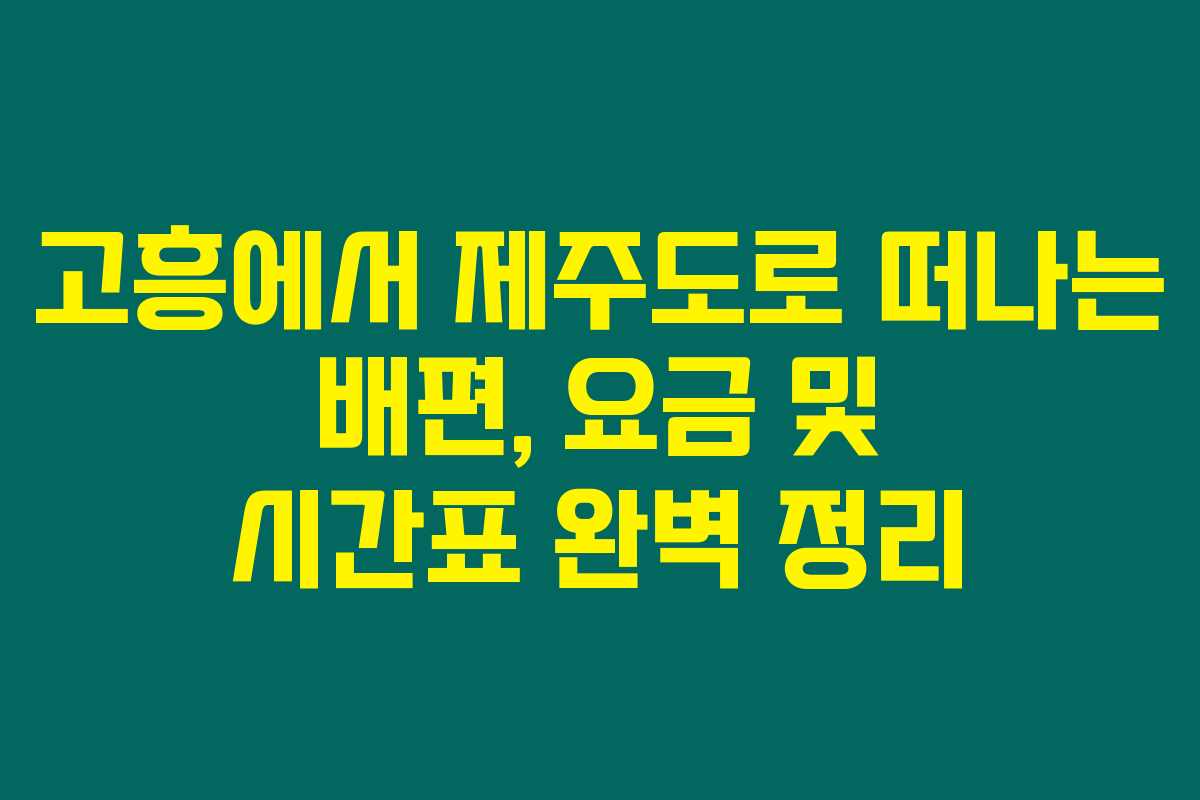 고흥에서 제주도로 떠나는 배편은 특별한 경험을 제공합니다. 완벽한 준비로 제주도의 자연과 문화를 만끽해 보세요! 여러분의 여행이 즐거운 추억으로 남도록 응원할게요.