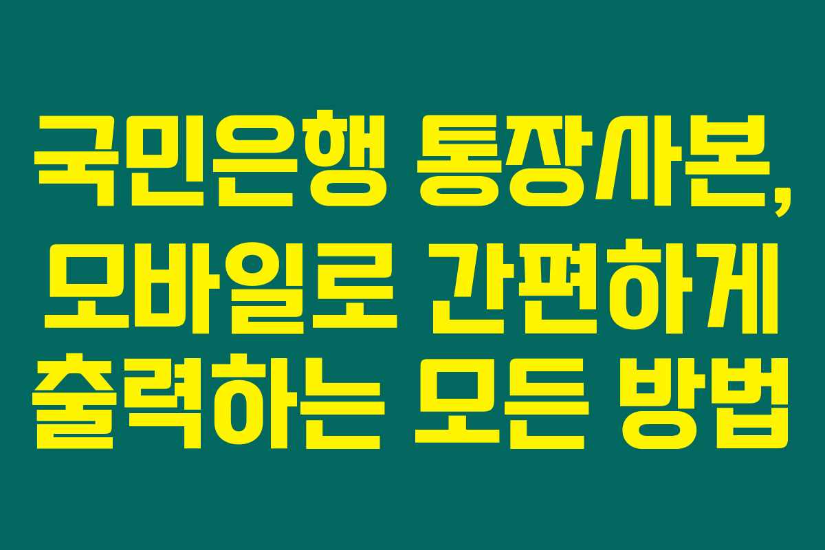 직장이나 아르바이트를 시작할 때, 통장사본을 제출하는 경우가 많지요. 오늘은 국민은행 통장사본 모바일 출력과 발급 방법에 대해 자세히 설명해 드릴게요. 아래를 읽어보시면 스마트폰으로 쉽게 통장사본을 출력할 수 있는 방법을 알아보실 수 있을 거예요.