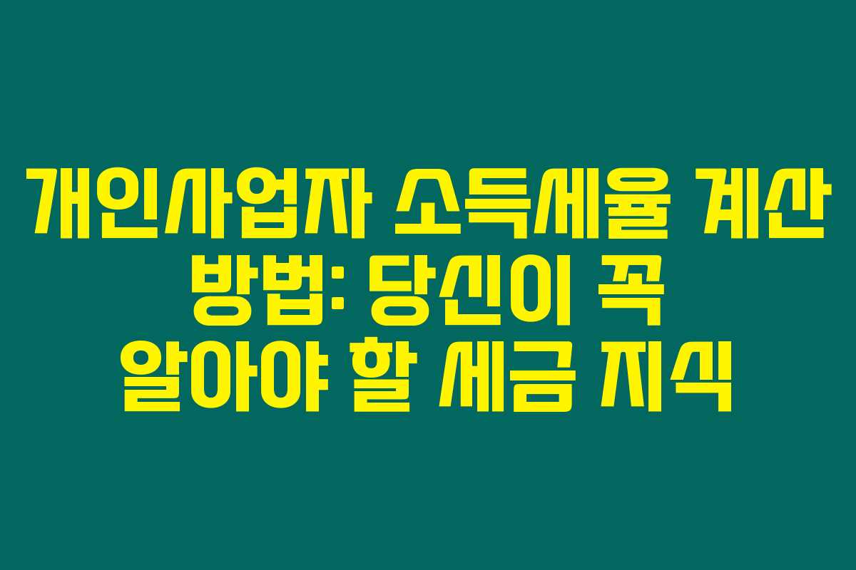 개인사업자의 소득세율 계산은 여러 요소가 복합적으로 작용하므로, 세액공제와 법적 의무를 잘 이해하고 활용하는 것이 중요합니다. 고급 정보를 잘 활용하면, 사업의 운영과 수익을 더욱 안정적으로 만들 수 있으니, 이 정보를 바탕으로 더욱 현명한 세무 관리하시길 바래요!