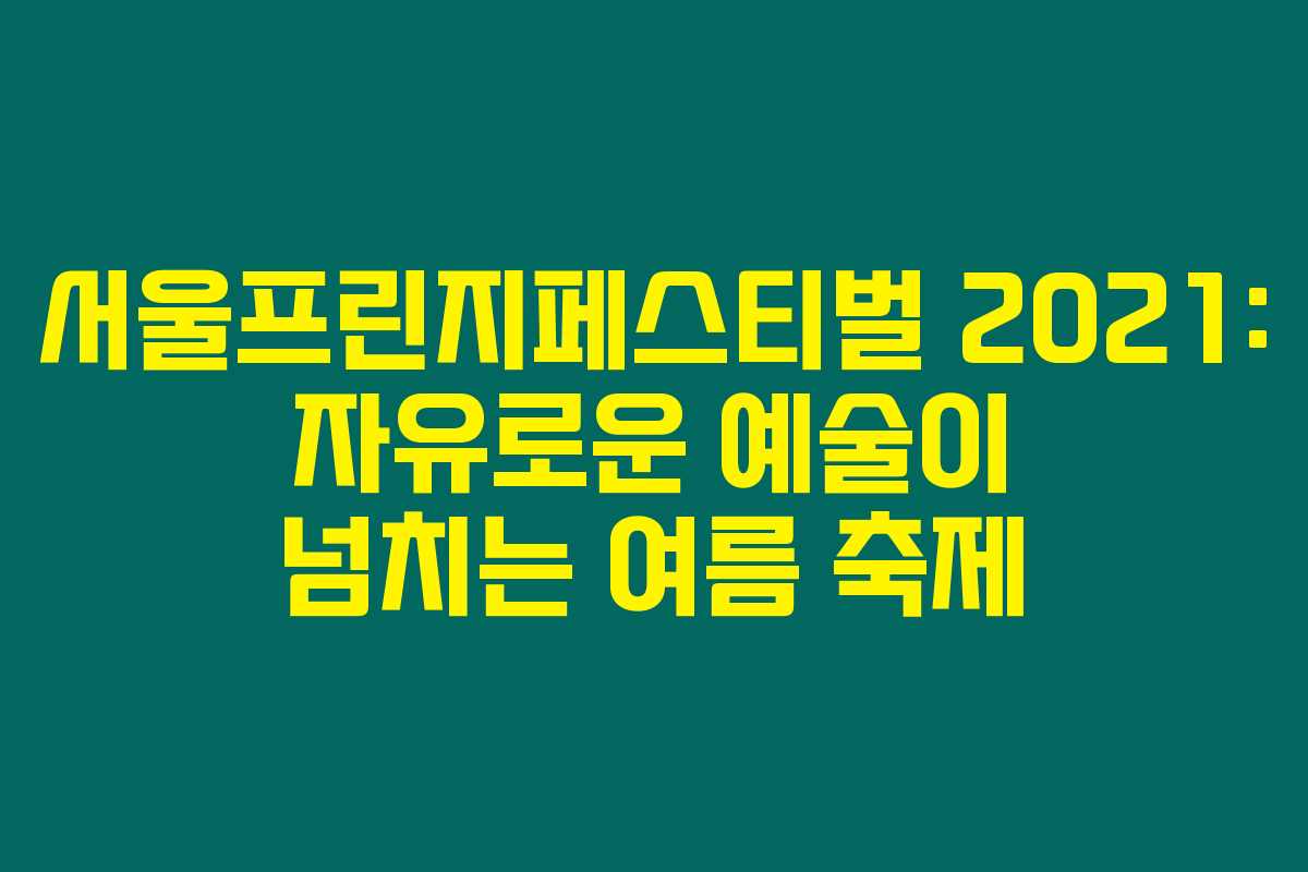 서울프린지페스티벌 2021은 2021년 8월 4일부터 8월 29일까지 개최됩니다. 다양한 공연과 전시가 서울 전역에서 열립니다.