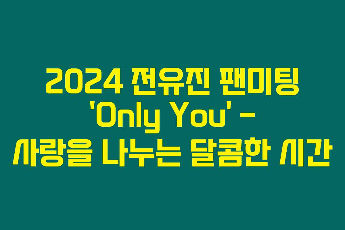 이렇게 흥미진진한 전유진 팬미팅 ‘Only You’에 대해 알아봤습니다. 다가오는 12월에 이루어질 이 특별한 무대를 통해 전유진의 매력을 한껏 느껴보세요! 저와 함께 이 아름다운 시간을 기대해 주시길 바랍니다.💖
