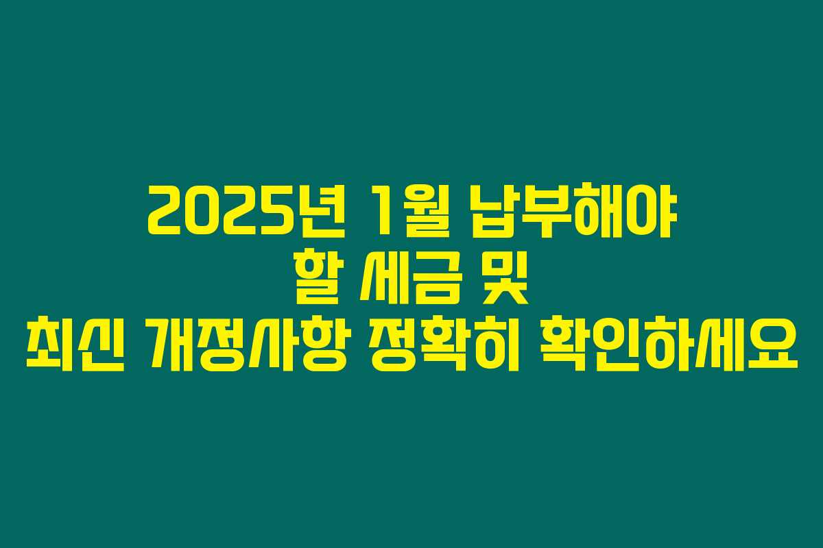 2025년 1월은 다양한 세금 납부가 중요한 시기입니다. 최신 정보와 내용을 숙지해서 불이익을 당하지 않도록 해요. 궁금한 점이 있다면 언제든지 문의하세요!