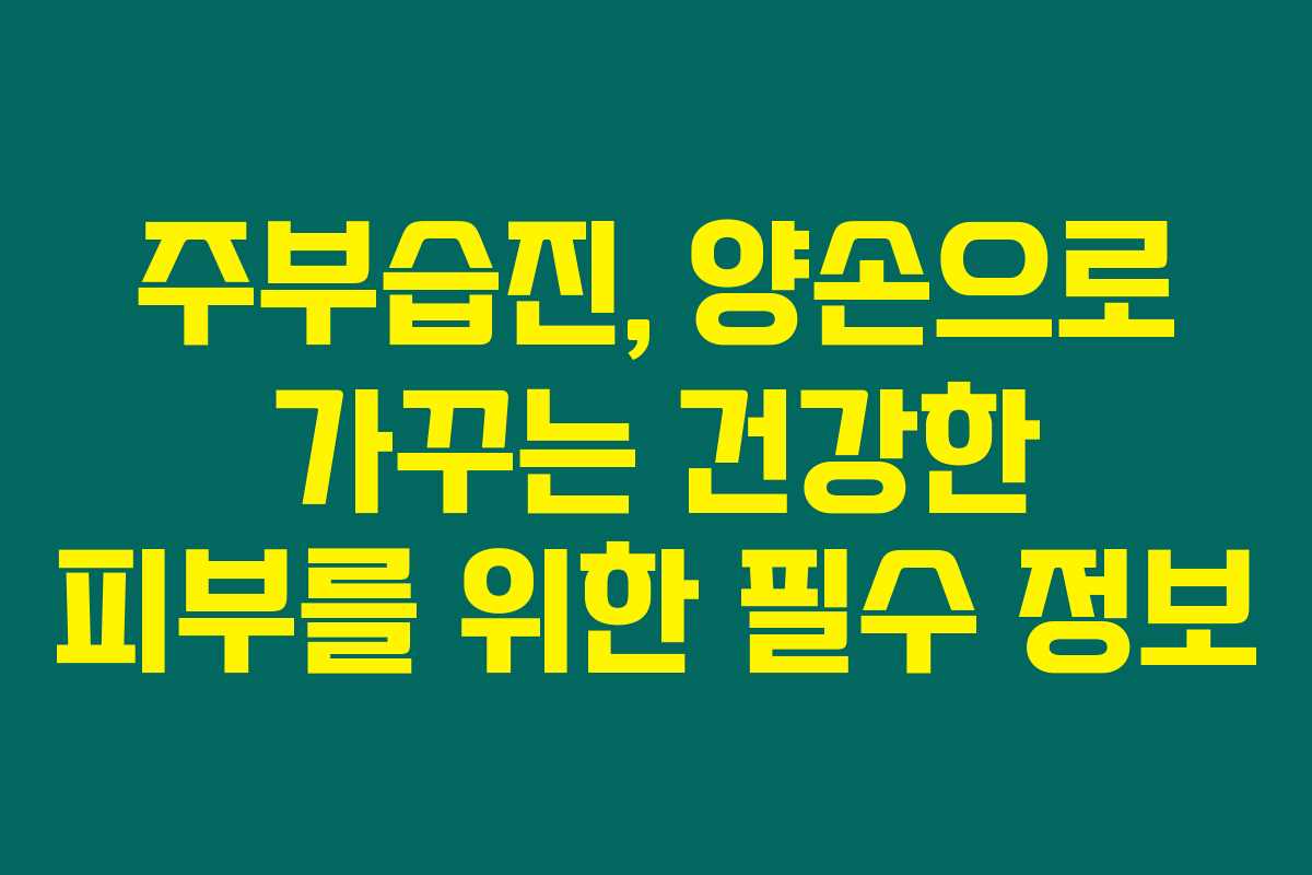 주부습진, 양손으로 가꾸는 건강한 피부를 위한 필수 정보