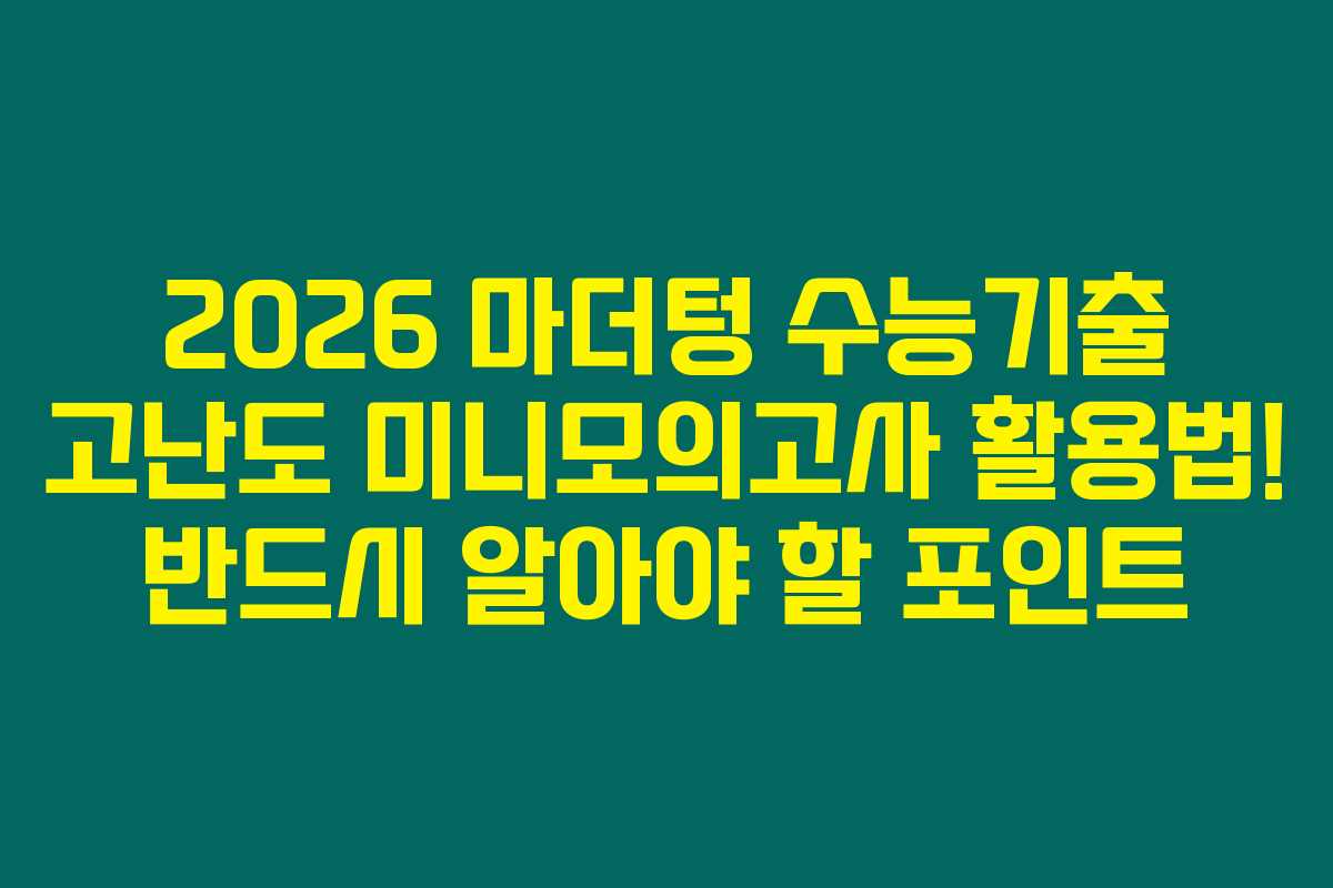 2026학년도 수능을 준비하고 있다면 마더텅의 고난도 미니모의고사 시리즈는 필수로 체크해야 할 학습 자료랍니다. 수능 준비가 막막한 수험생이라면, 시험 준비에 대한 전략을 다시 한 번 점검해봐야 합니다. 수능 기출 문제로 실전 감각을 익히고 싶은 분들 절대 놓치지 마세요!