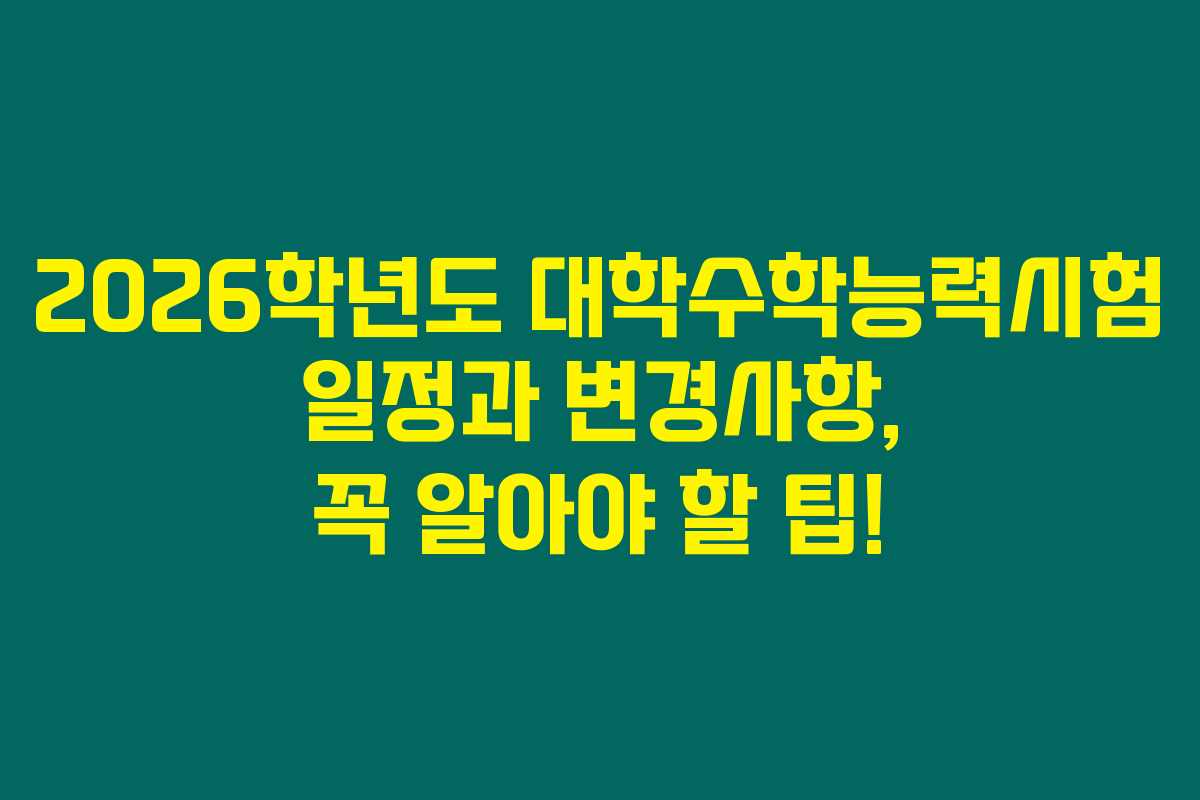 2026학년도 대학수학능력시험은 여러분에게 정말 중요한 기회이며 도전의 장이에요. 시험 일정과 변경 사항을 미리 확인하고 철저히 준비한다면 좋은 결과를 얻을 수 있을 거예요. 모든 수험생 여러분의 건투를 빌며 천천히 준비하셔서 원하시는 목표를 이루시길 바랄게요!