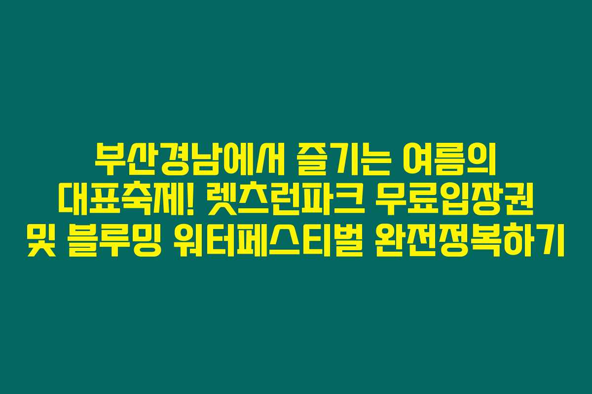 올 여름, 부산경남에서 특별한 물놀이 경험을 원하신다면, 렛츠런파크 무료입장권 받기와 블루밍 워터페스티벌을 주목해 보세요. 물놀이하면 여름이 떠오르는데, 특히 어린이들과 함께 하는 가족 단위 여행 코스에 정말 딱이거든요. 매력적인 무료 입장 이벤트까지! 다음 내용을 읽어보시면 놓치기 쉬운 혜택들에 대해 자세히 알 수 있습니다.