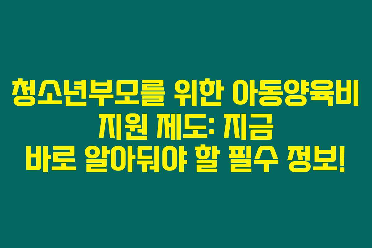 청소년 부모님들께서 아동 양육비 지원 제도를 놓치고 있다면 정말 아쉬운 일이에요. 이 제도는 여러분의 경제적 부담을 덜어주고 안정된 양육 환경을 마련하는 데 큰 도움을 줍니다. 아래를 읽어보시면 지원 대상부터 신청 방법까지 모든 정보를 꼼꼼히 정리했으니, 절대 놓치지 마세요!