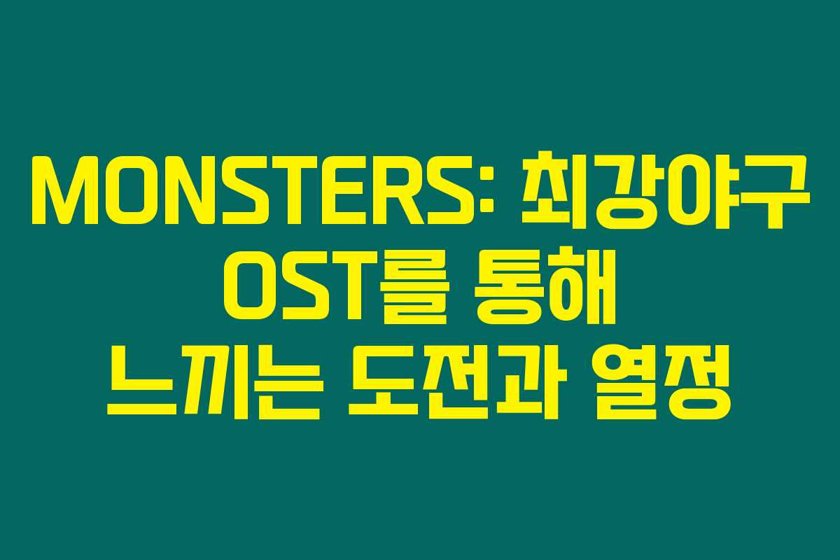 MONSTERS는 JTBC의 인기 프로그램 최강야구의 OST란 말이에요. 이 프로그램은 전설적인 선수들이 팀을 이루어 강팀과 대결하는 리얼리티인데요, 그야말로 야구의 열정이 가득한 곳이죠. 이원석이 참여한 이 곡은 프로그램의 드라마틱한 서사를 완벽하게 표현하고 있어요. 이런 배경 이해하게 되면, 음악의 감동이 배가 되죠.