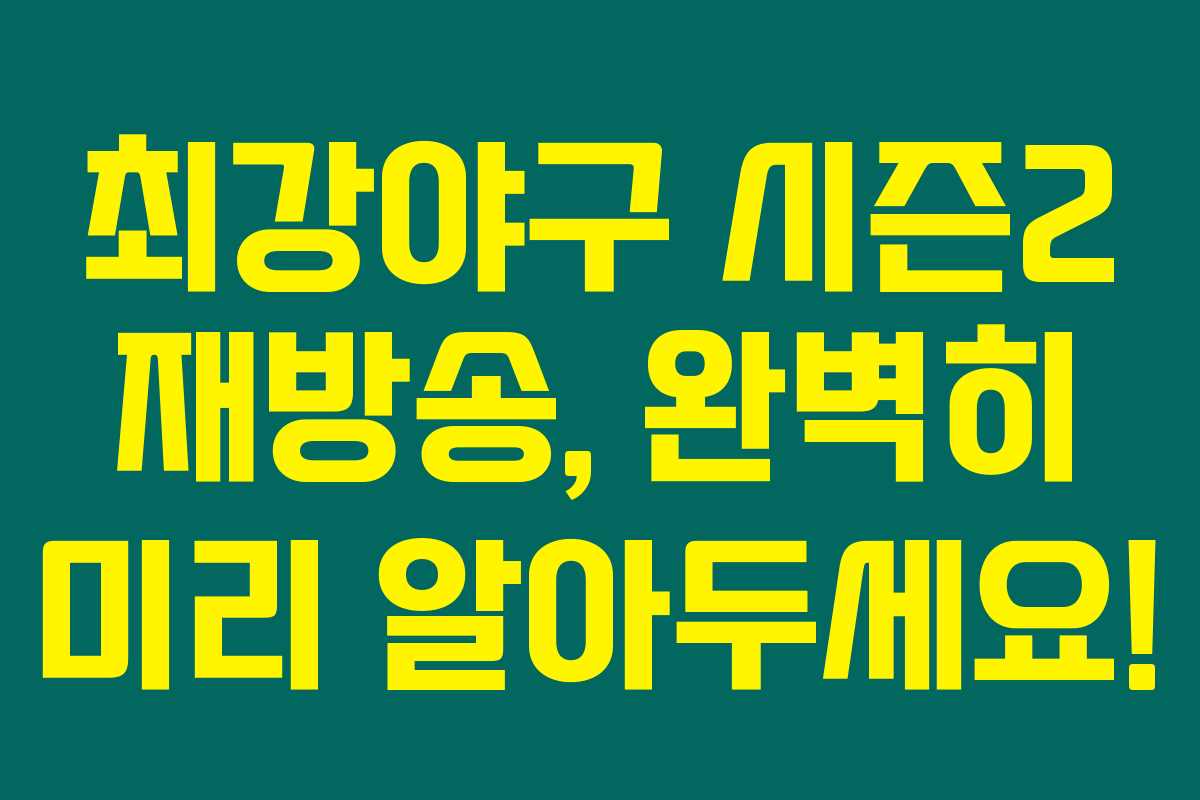 최강야구 시즌2의 정보가 이렇게 유용하니, 재방송이 필요한 분들께 꼭 도움이 되셨으면 좋겠어요. 또 어떤 재미있는 부분이 있을지 시즌3도 기다려봅니다. 다음 방영일은 확실히 놓치지 마세요!