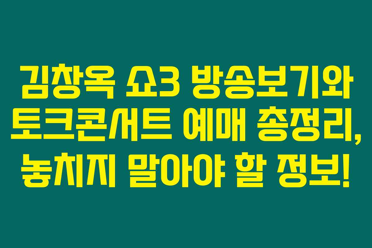 김창옥 쇼3는 많은 이들에게 위로와 웃음을 주는 훌륭한 프로그램이에요. 기회를 놓치지 말고 방송 편성표 확인이나 예매를 통해 꼭 경험해보세요. 여러분의 감동 어린 순간을 만날 수 있을 거예요!
