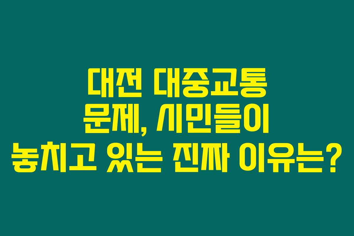 대전의 대중교통 문제를 알고 싶다면, 아래 내용을 반드시 확인해보세요. 많은 대전 시민들이 몰라서 간과하고 있는 문제들을 들여다보면, 정말 놀라운 사실들이 드러납니다. 대중교통이 불편하다고 느낀다면, 그 이유는 무엇인지? 이 글을 통해 대전 대중교통에 숨겨진 문제들을 알아보도록 할게요.