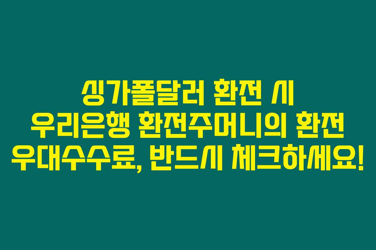 싱가포르 여행을 앞두고 싱가폴달러를 환전하려고 하신다면 중요한 정보를 확인해야 해요. 특히 우리은행 환전주머니를 이용하면 환전 우대수수료 혜택을 받을 수 있으니까요. 아직 환전 예산을 정하지 않았다면 아래 내용을 꼭 확인해보세요!