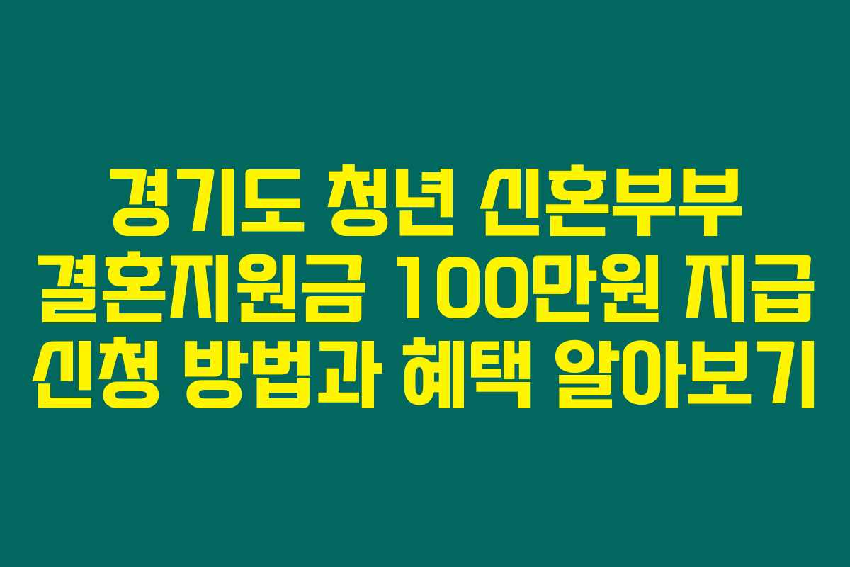 경기도에서 제공하는 청년 신혼부부의 결혼지원금이 100만원이라는 사실 알고 계셨나요? 결혼을 준비하거나 최근 결혼한 신혼부부에게 큰 도움이 될 이 정책을 놓치고 싶지 않다면, 아래를 읽어보시면 중요한 신청 방법과 지원 대상 조건, 혜택에 대해 모두 정리해드릴게요.