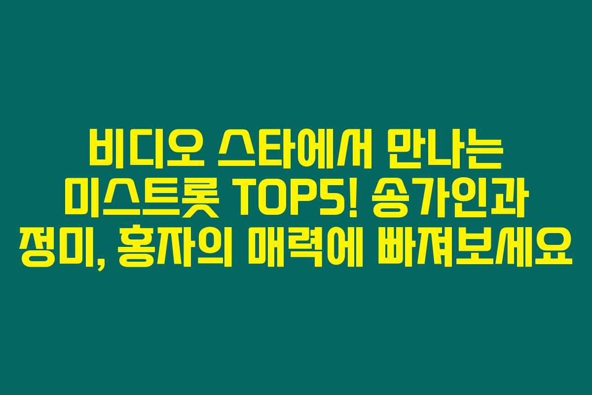 비디오 스타 방송을 기다리시나요? 미스트롯 TOP5인 송가인, 정미, 홍자가 출연한다고 하니 정말 기대되지 않나요? 이 방송에서 어떤 이야기와 매력을 보여줄지 궁금하실 거예요. 아래를 읽어보시면 이들의 이야기에 푹 빠질 수 있는 기회를 놓치지 않을 거예요!