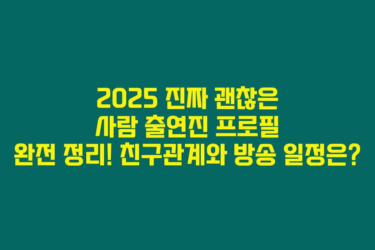 2025년 화제를 모으고 있는 진짜 괜찮은 사람의 출연진은 각기 다른 매력과 스토리를 지니고 있어요. 아래의 표를 통해 각 출연진의 나이와 직업, 주요 특징을 쉽게 확인해 보세요!