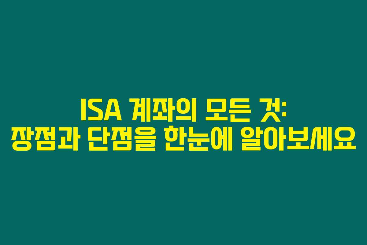 ISA 계좌는 투자와 세제혜택을 동시에 누릴 수 있는 계좌인데요. 19세 이상의 근로소득자라면 누구나 가입할 수 있답니다. 그렇지만 절세 효과를 받기 위해서는 몇 가지 조건들이 있어요. 그래서 이번 글에서는 ISA 계좌의 장점과 단점에 대해 자세히 알아볼게요!