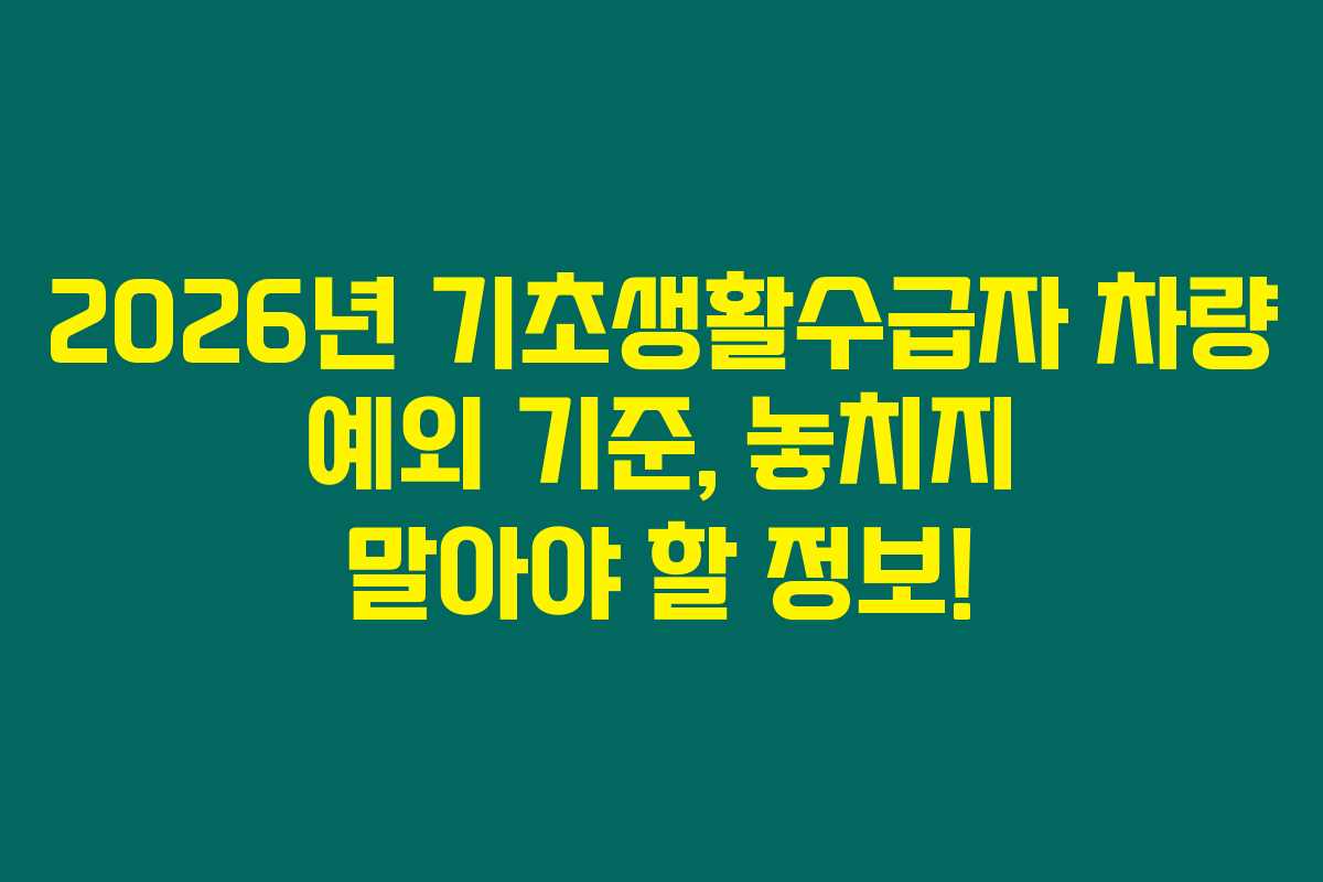 - 2026년 기초생활수급자 자동차 예외 기준, 어떤 변화가 있나요?